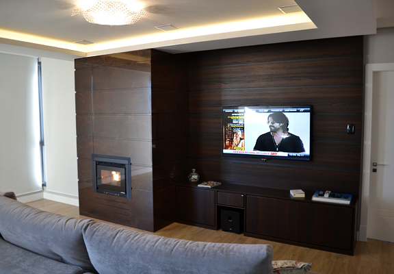 Automação com sistema sem fio Fibaro não podia ficar de fora. Levando todos os controles de iluminação, cortinas, TV, DVD, som ambiente, ar condicionado e lareira automática para o smartphone com telas intuitivas e práticas, agregando cenários diversos e praticidade ao uso do apartamento.