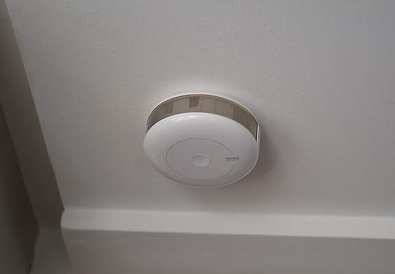 O truque final fica por contado do multi sensor (luminância, temperatura e presença) Fibaro que além de discreto com apenas 44 mm de diâmetro agregou inteligência a residência, avisando se luzes foram esquecidas ligadas, fechando cortinas quando a luz solar ou temperatura aumenta demais e ligando a lareira automática nos dias muito frios. O sensor de fogo e fumaça é o responsável pela segurança do ambiente.